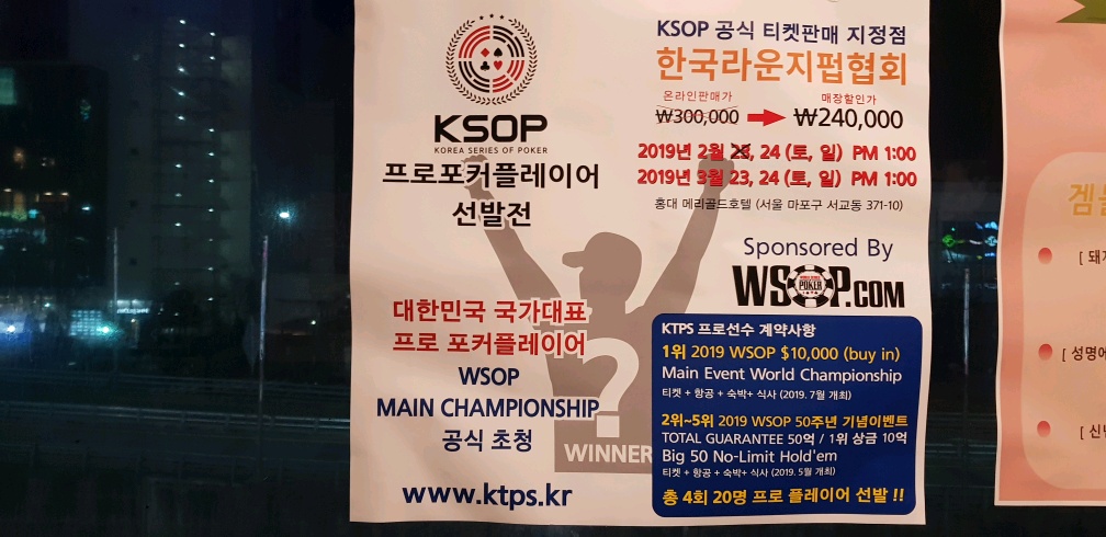 공식티켓을 판매하고(개인적인 티켓구매는30만/지정점에서 사면 24만원) 바 내에서 홀덤 다승자를 통해 참가권을