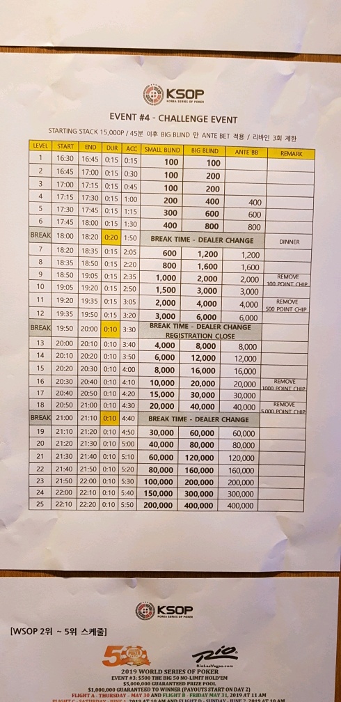 첫번째는 15,000칩에 무료로 참여가 가능하고, 2번째 부터 3만원의 리바이인 비용이 들죠.