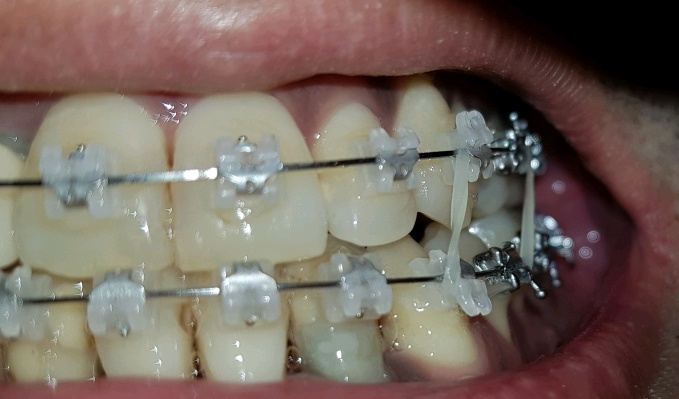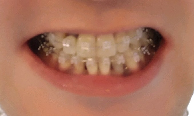 (교정중 밥은 먹어야되기에 어금니 만이라도 닫을수 있도록 플라스틱재료를 올려놓은것??)