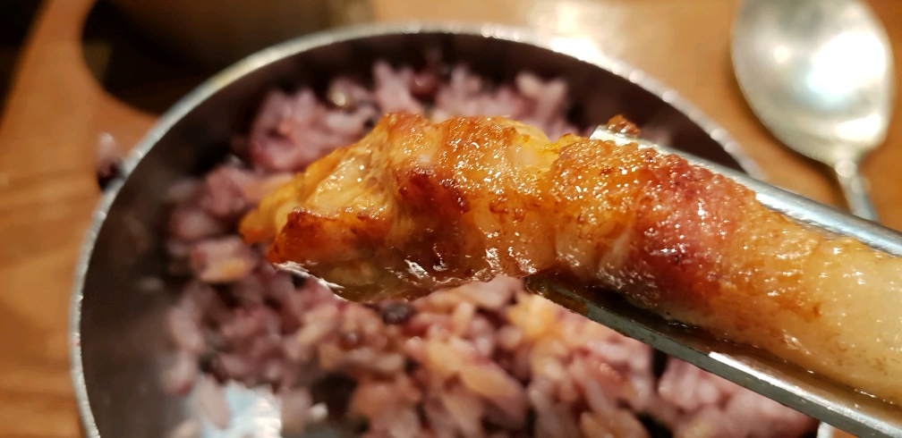 노릇노릇 잘 구워진 고기랑 버섯을 같이나온 멸치젓갈?? 갈치젓?? 에 살짝 찍어서 먹었는데