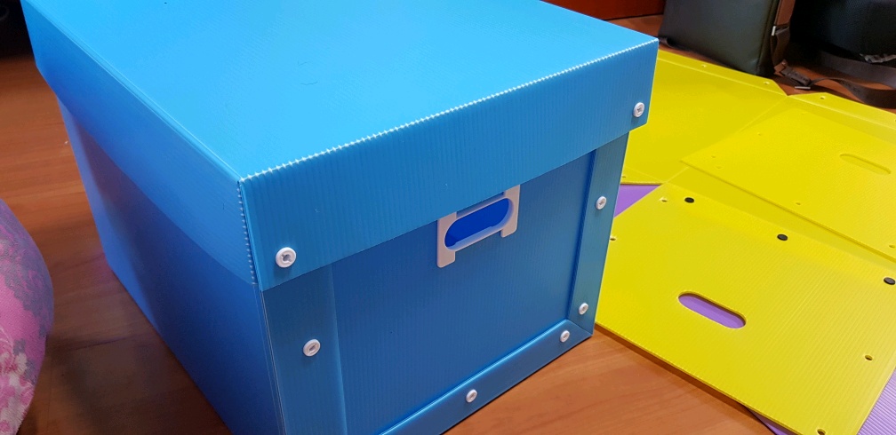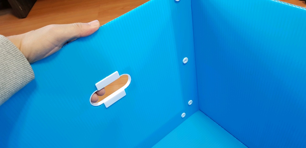 플라스틱재질의 상자 4개를 세워보니