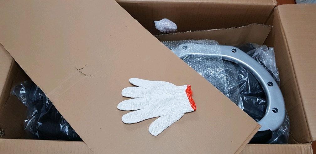 나름 센스있게 의자 조립할 때 장갑 끼고 하라고 면장갑 한짝도 넣어 주셨네요?