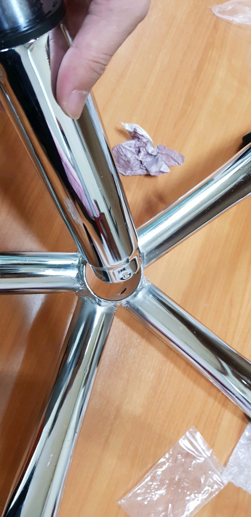 나사 다 조이고 난 후 마지막으로 의자 들어서 발 중앙에 넣어주기만 하면 끝!