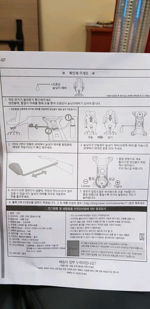 싸구려 의자 샀다가 조금만 앉아 있어도 불편하고 팔 거치하는곳? 살짝 눌르면서 일어나다가