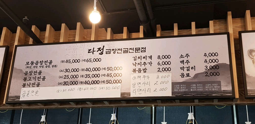 도착하자 마자 배가 너무 고파서 호텔근처 밥집을 찾다가 발견한 다정곱창전골점