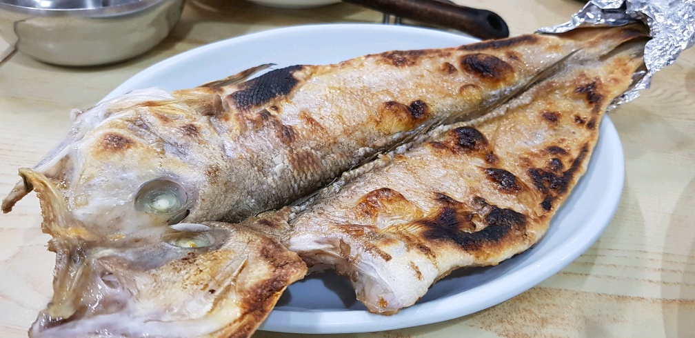 한마리 주문하니 접시크기랑 비교해 보시면 알겠지만 큰 옥돔 한마리가 나오더군요.