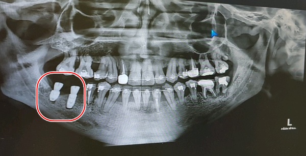 오른쪽 아래 어금니는 양쪽으로 받혀주는 치아들도 없는상태에 보철기가 당겨주는 역할까지 하는 바람에