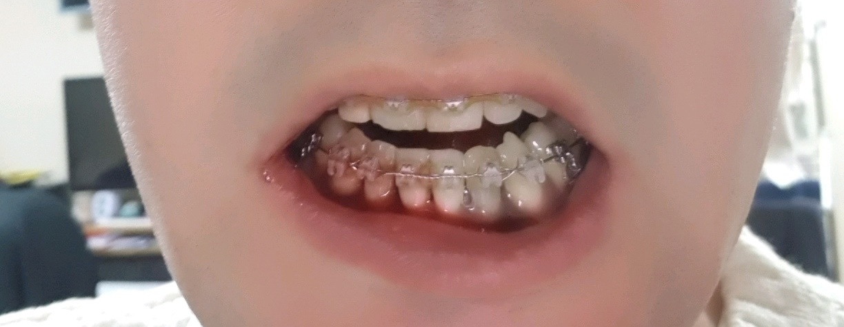 교정하는 도중 보철 붙혀놓은 치아 사이에 충치가 생기는 바람에