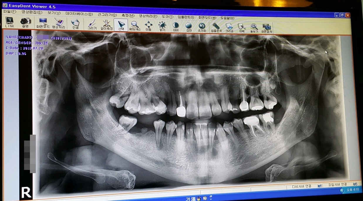뿌리쪽이 곧 뽑아야 할 만큼 너무 많이 빠져나와서 어쩔수 없이 제거하고 임플란트까지 하기로 했다.