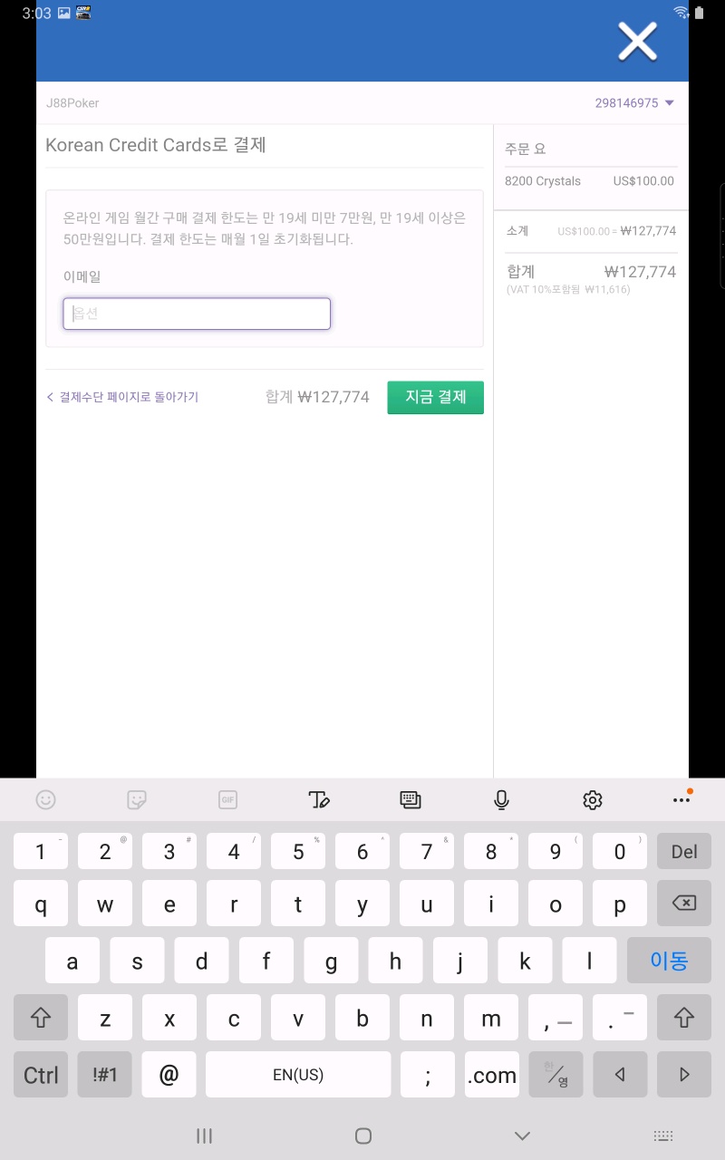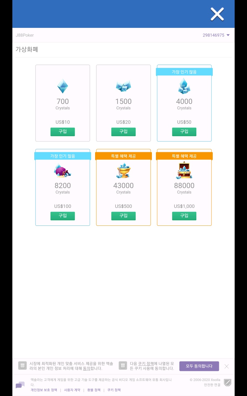 충전할 때 1천불 결제하는 걸로 하고 88,000크리스탈 이니까