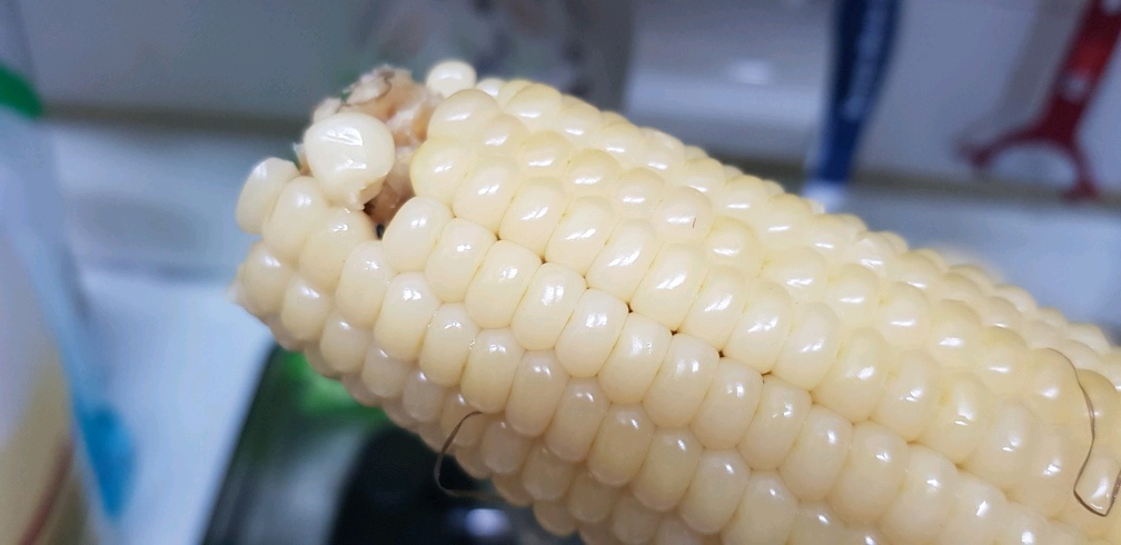 옥수수 윗부분에 살짝 쭈글쭈글 한 부분은 왠지 몇일 집안에 방치해 둬서 이렇게 변한 것 같은....;;