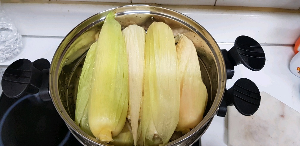 옥수수 알갱이 보이시죠? 흰색이 이렇게 탱탱하고, 물을 살짝 머금은게 보이면 다 익은겁니다.