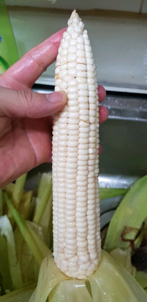 옥수수 윗부분에 살짝 쭈글쭈글 한 부분은 왠지 몇일 집안에 방치해 둬서 이렇게 변한 것 같은....;;