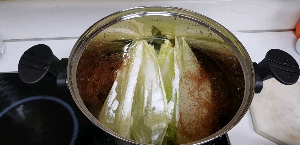 유투브를 보고 따라 해본다고 옥수수 수염이랑, 속껍질을 같이 넣으면