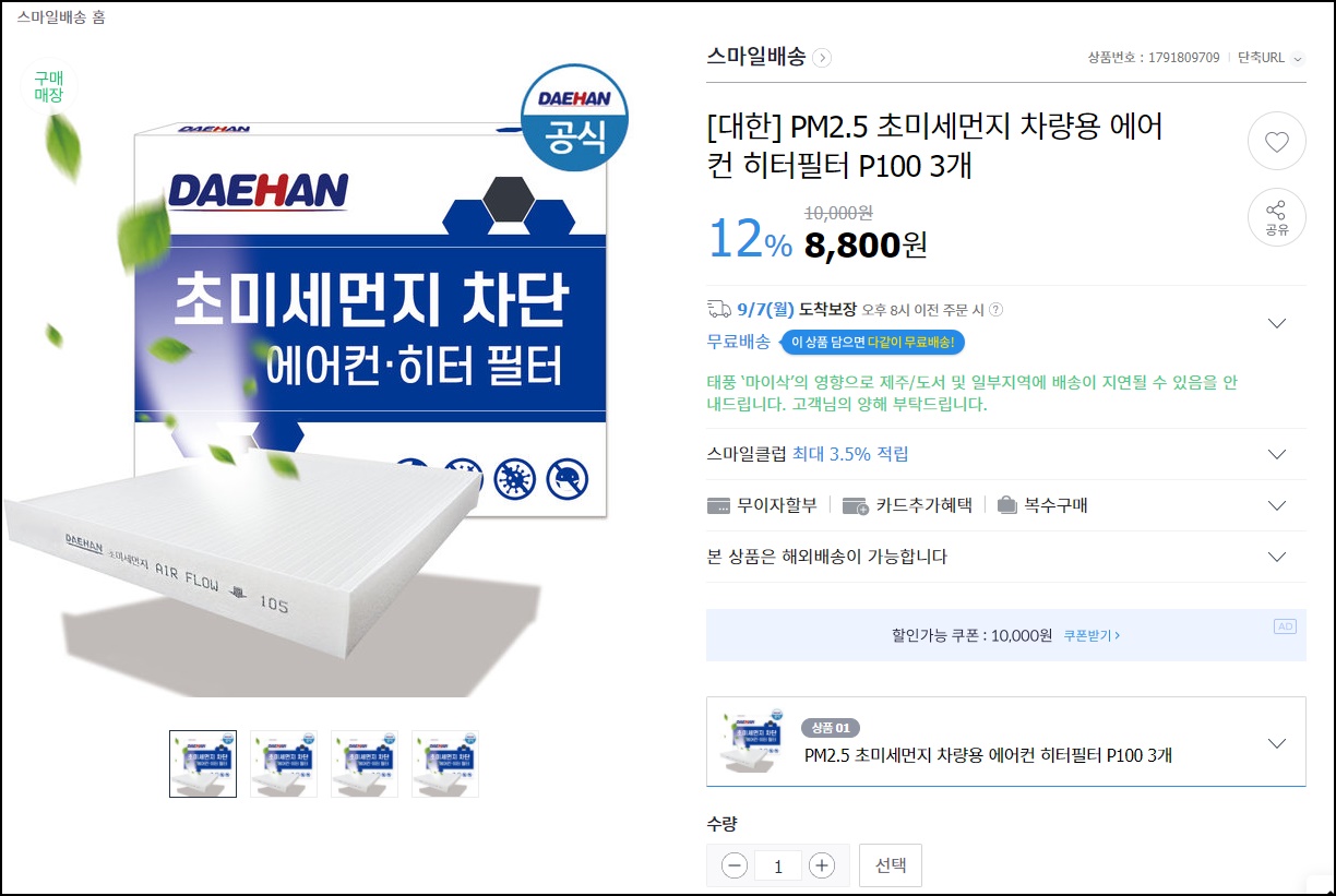 에어컨 필터가 무려 3개나 들었는데 고작 9900원??