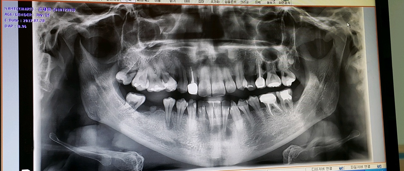 왠쪽 어금니는 사랑니가 어금니 뿌리를 밀면서 옆으로 누워서 자랐고, 그때문에 어금니 뿌리가 다 손상된 상태였는데 사랑니가 자랄 당시 아파도 진통제 먹으면서 버텼는데 도저히 못버틸때 쯤 아무 치과나 방문해서 제거 했던 이력이 있다.