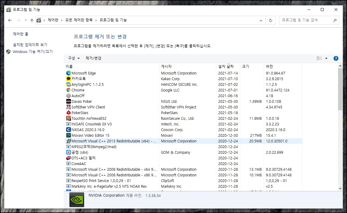 일단 제어판/프로그램 추가제거에 들어가서 다 찾아봐도 연관된 내용은 안나오고;;