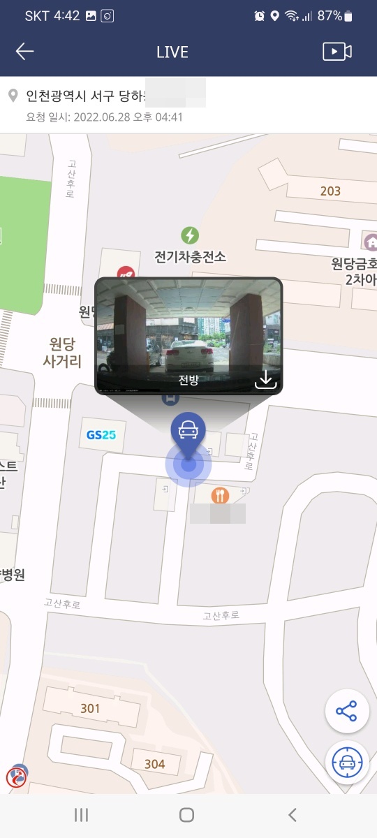 주차중일때 충격이 가하면 라이브 이미지 보기 해서 요렇게 사진으로 확인이 가능하더군요.