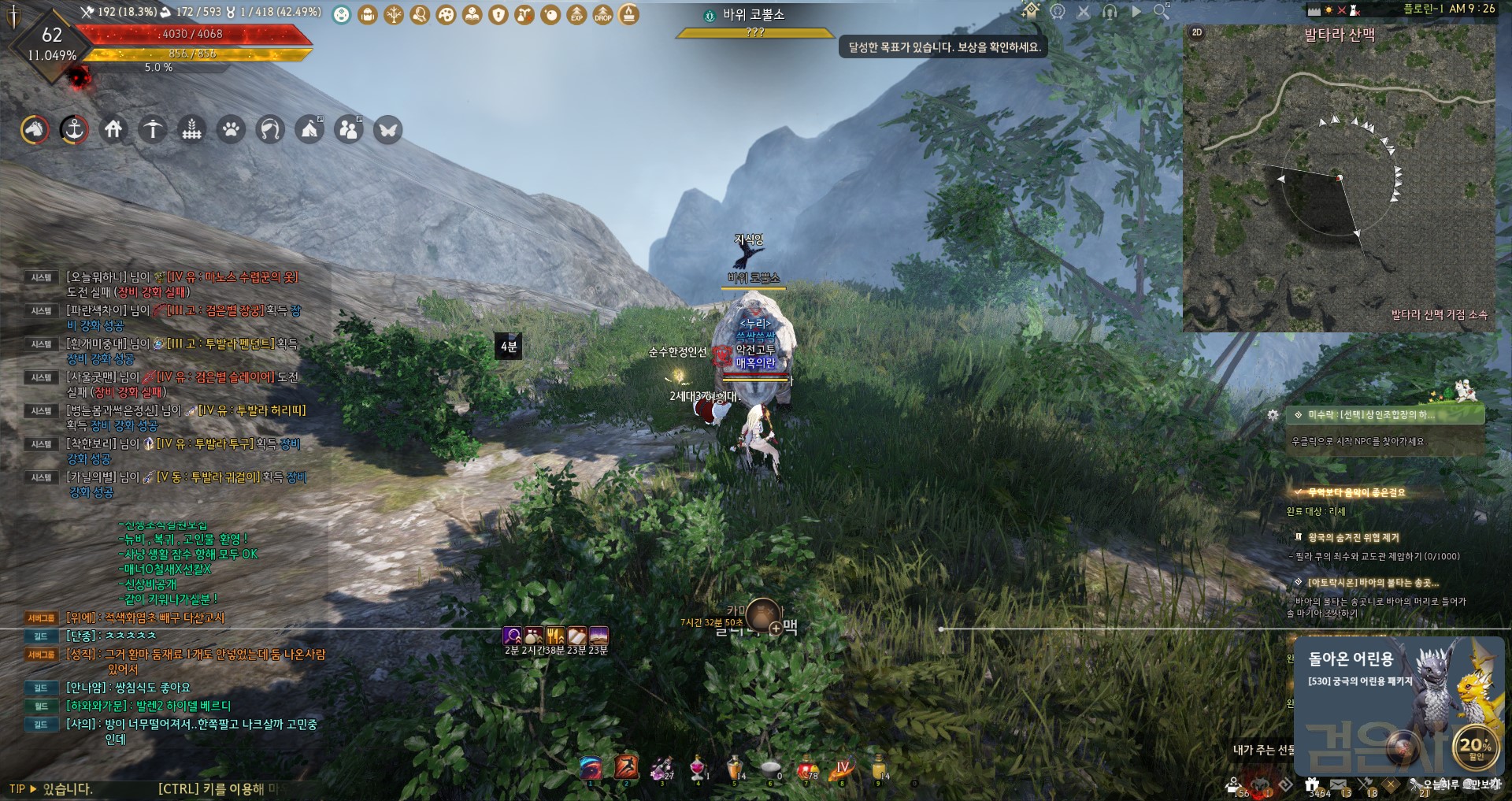 발타라 산맥에서 아날로그 시계로 32분 방향? 이고요