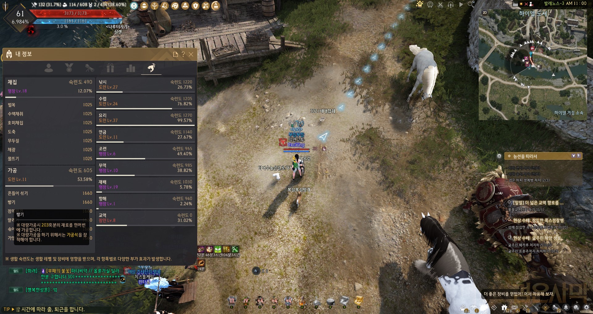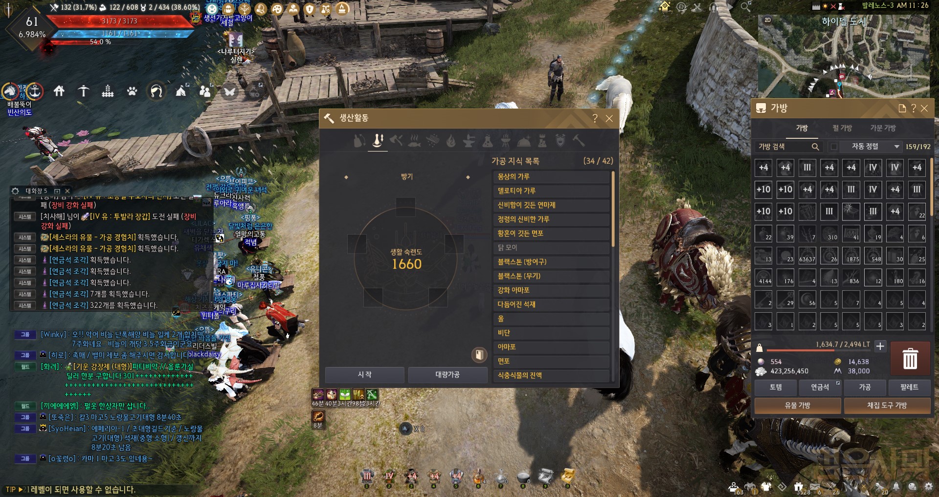 혹시나 가공 숙련도에 따라 더 나올수도 있지 않을까 싶어 "고"마노스 가공옷, "유"마노스 가공석도 착용하니