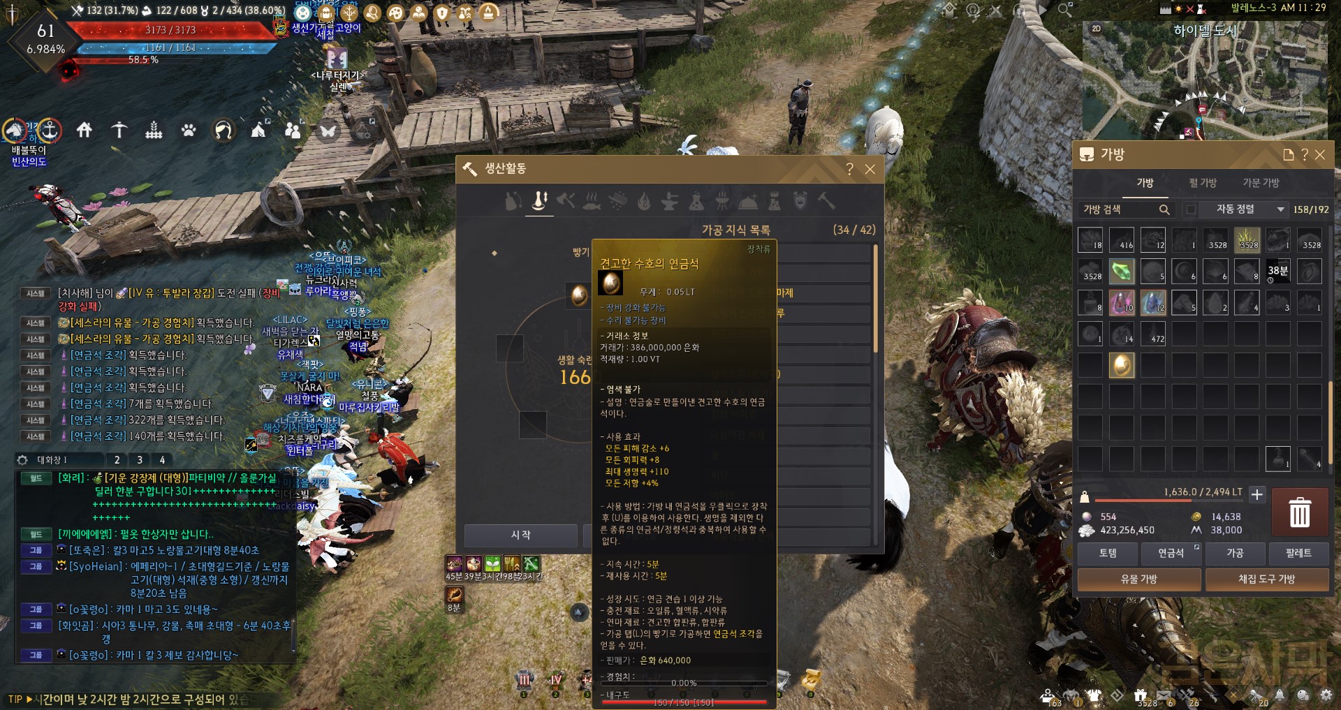 혹시나 가공 숙련도에 따라 더 나올수도 있지 않을까 싶어 "고"마노스 가공옷, "유"마노스 가공석도 착용하니