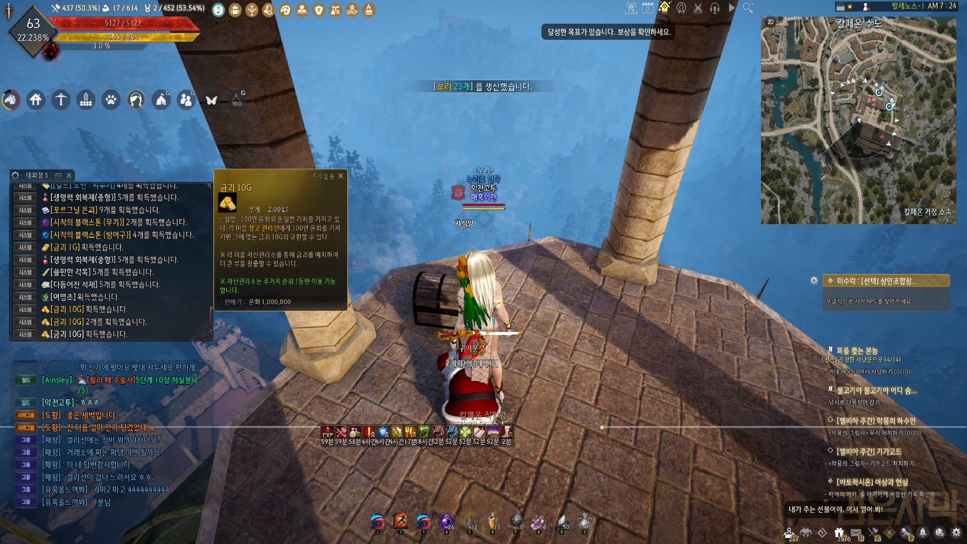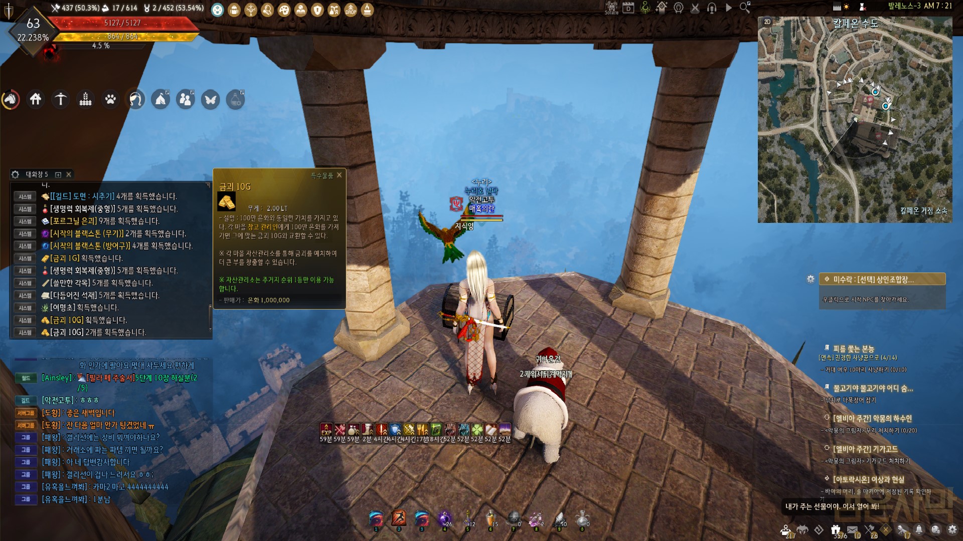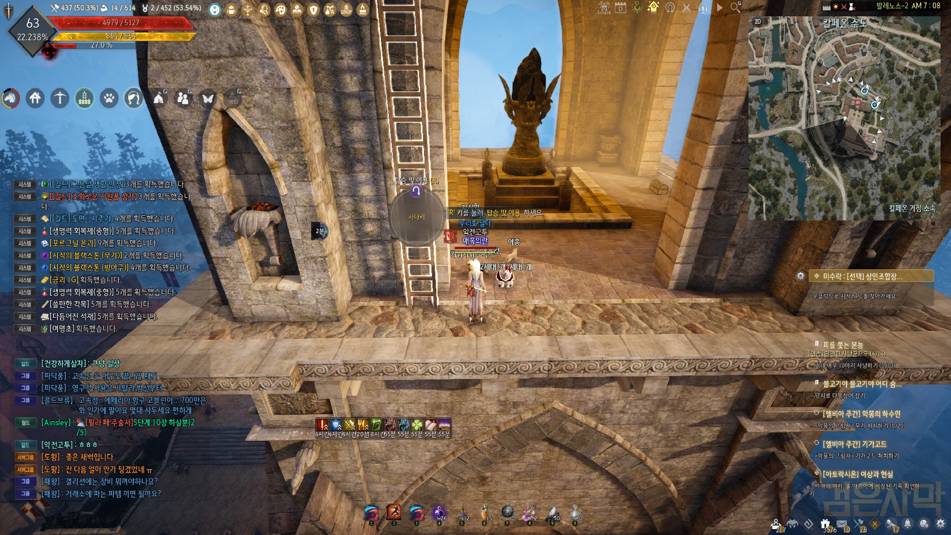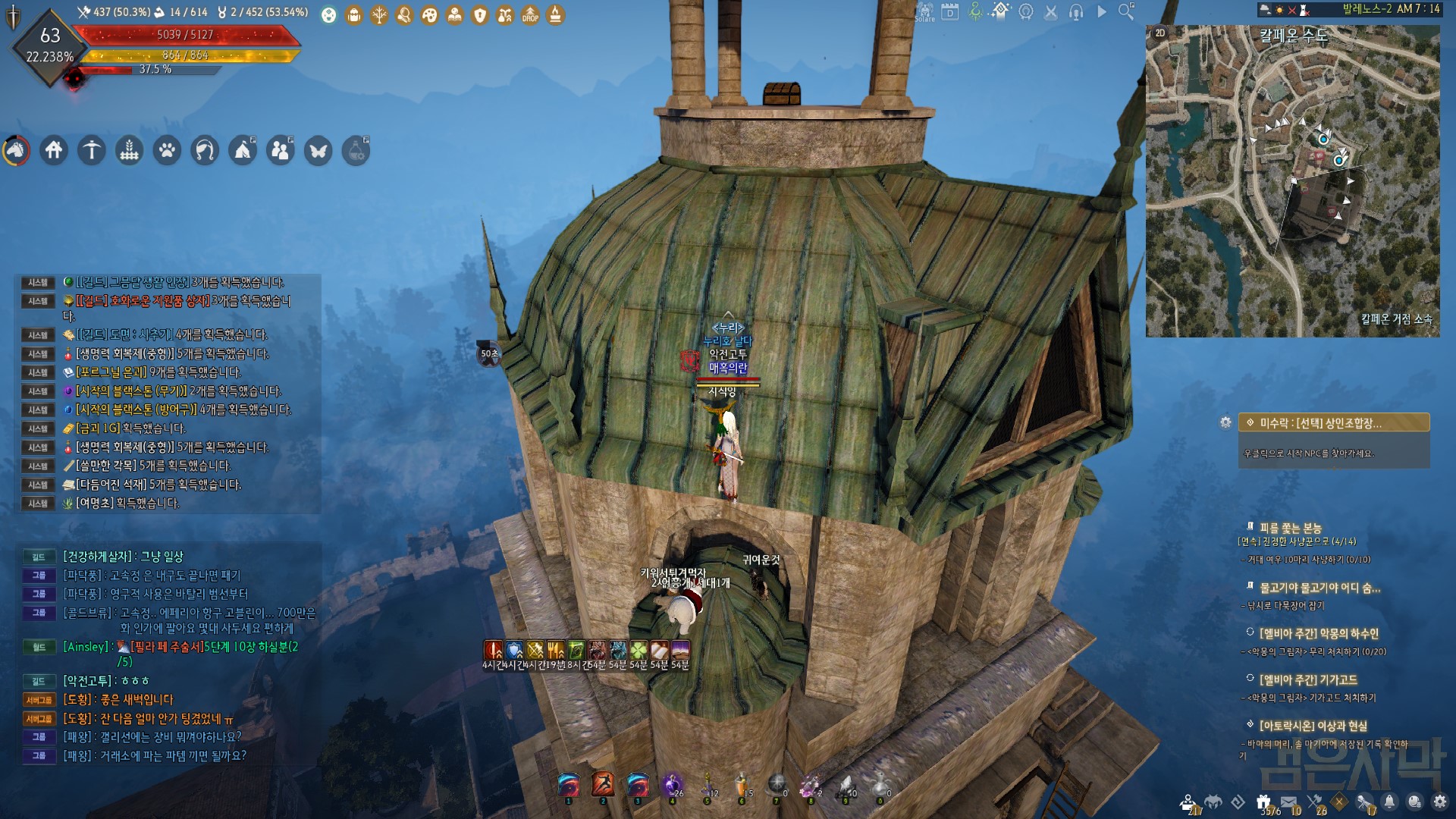 우연히 칼페온 메인퀘 밀던 중 탑 꼭대기로 안내 하길래