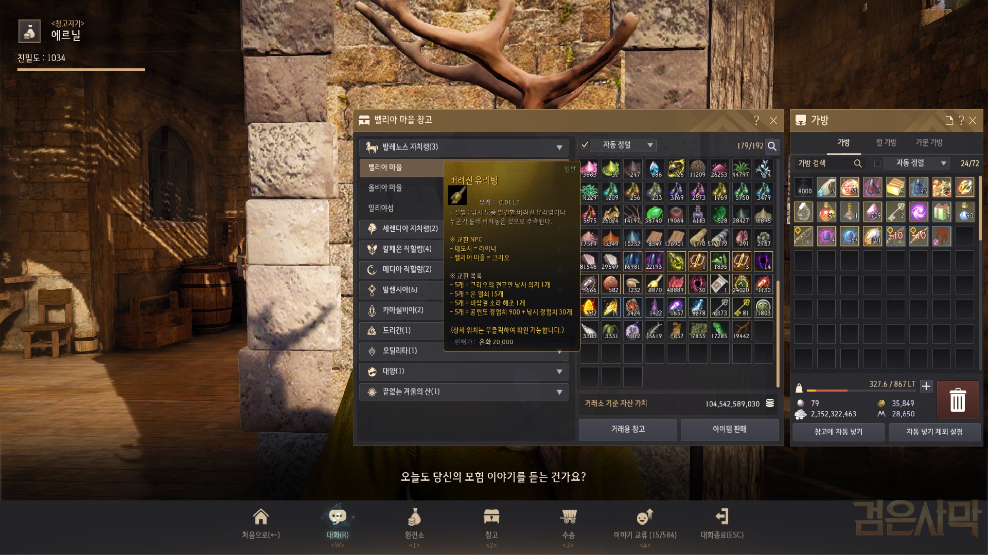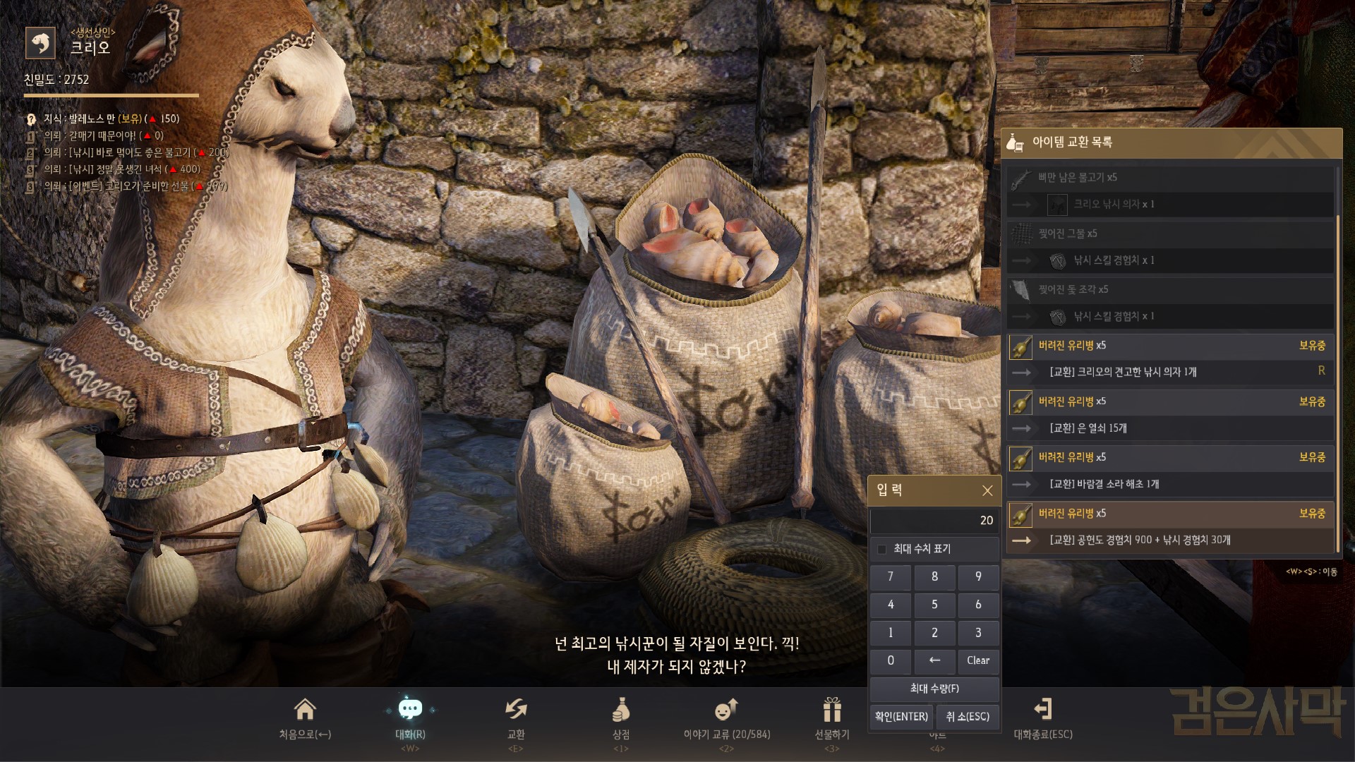 위치는 벨리아 자동낚시 하는 곳 가는 도중에 해안가 바위위에 펭귄이랑 같이 있음(기운20소모) 8시간동안 적용됨