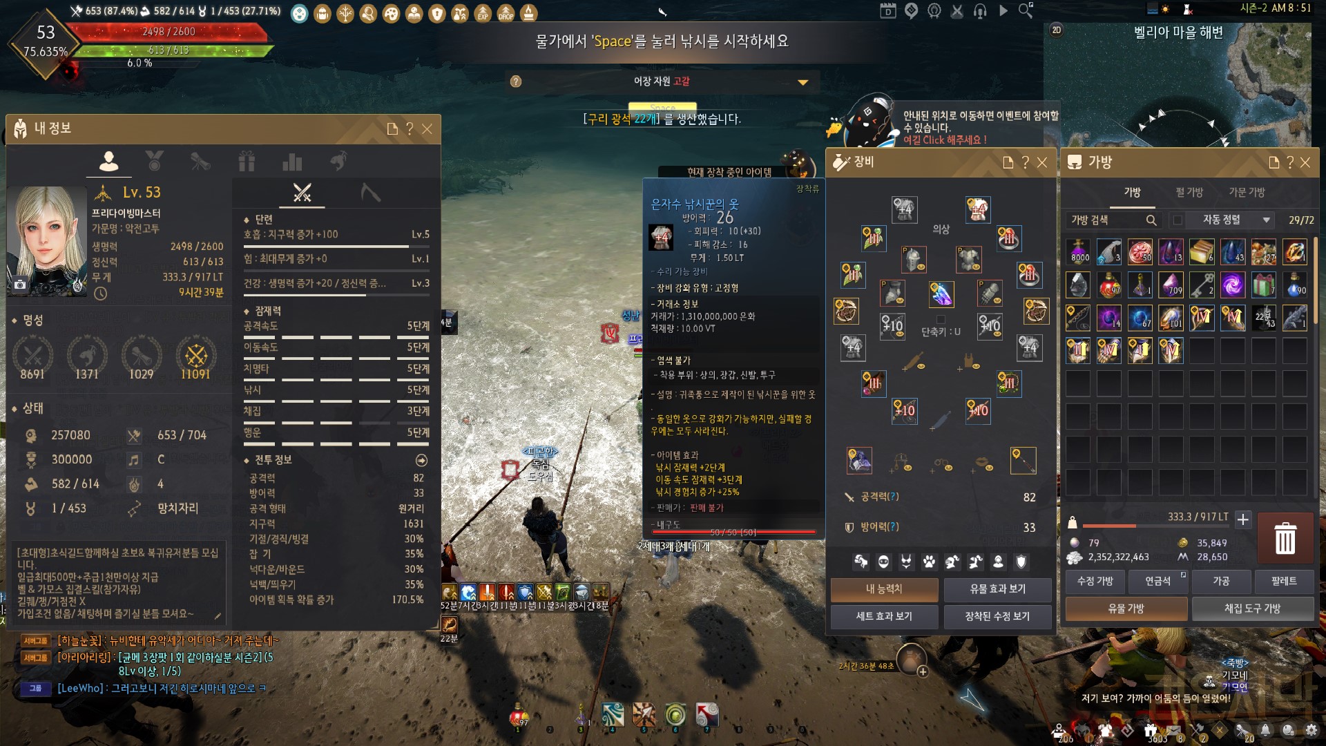 당연히 낚싯대랑 찌도 하나 장착해 주고( 이 두개의 템은 거래소에서 살수있는데 강화해 보신 분 들은 알겠지만 아주 저렴한거라는 걸 알수 있을겁니다)