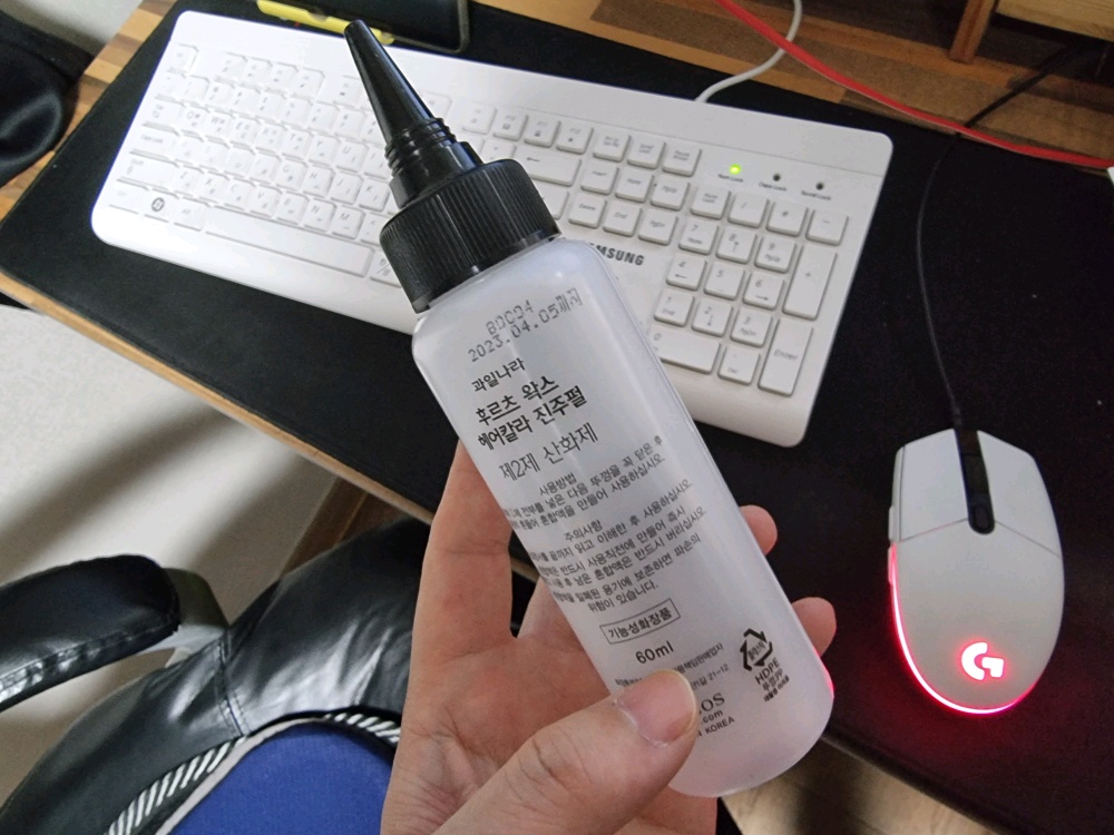 여기다 1제(염모제), 2제(산화제) 들을 같이 담아서 희석해서 쓰는게 훨씬 편합니다.