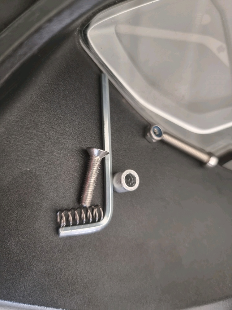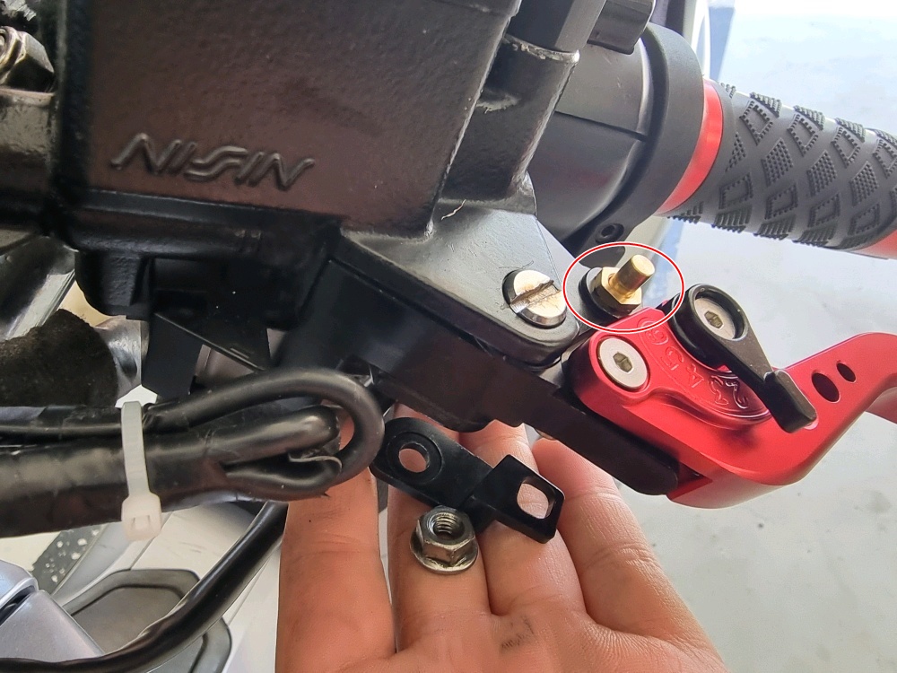 뒷브레이크 잡은 상태인데 나사가 구멍에 들어가 있는거 보이시죠?