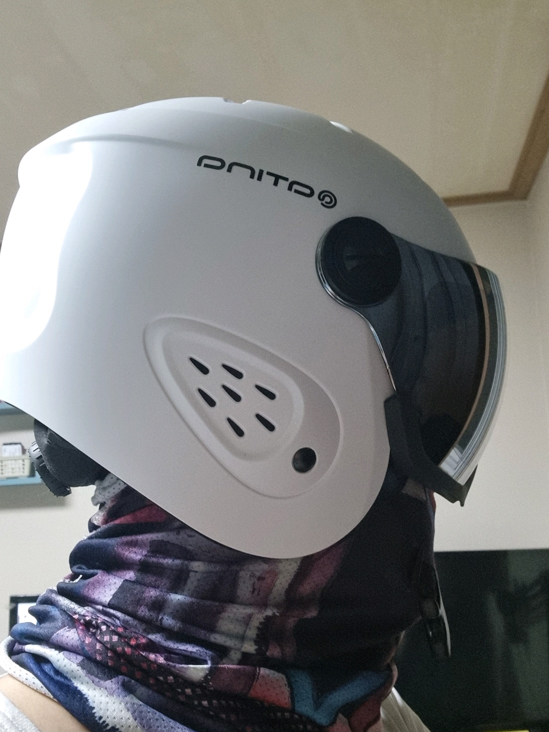가벼우면서 귀쪽까지 헬멧이 내려와서 블루투스도 무난히 나사 조여가며 무난히 장착이 가능했음..