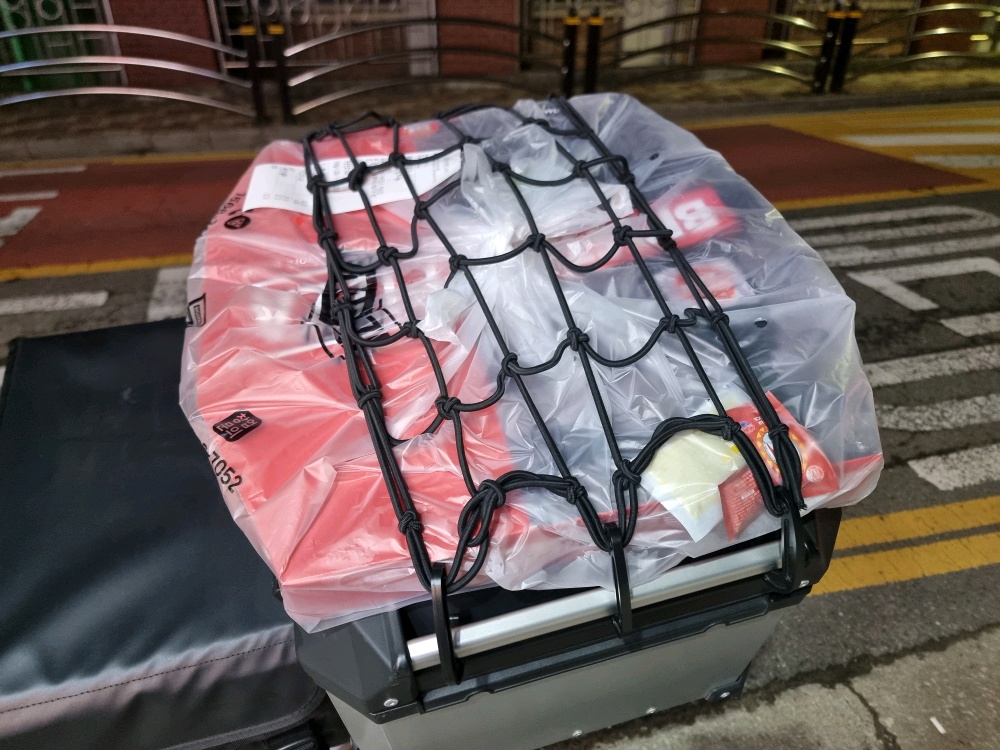 탑박스 가득 차서 더이상 안들어 갈 때 저렇게 탑박스 위에다 올리고 그물망 한번 씌워주면