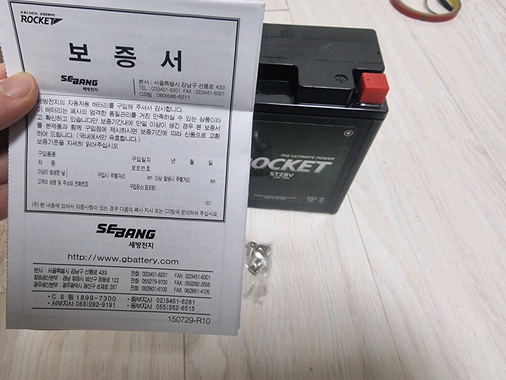베터리 장착할 때는 역순으로 +단자 먼저 잠그고, -단자 잠그면 됩니다.