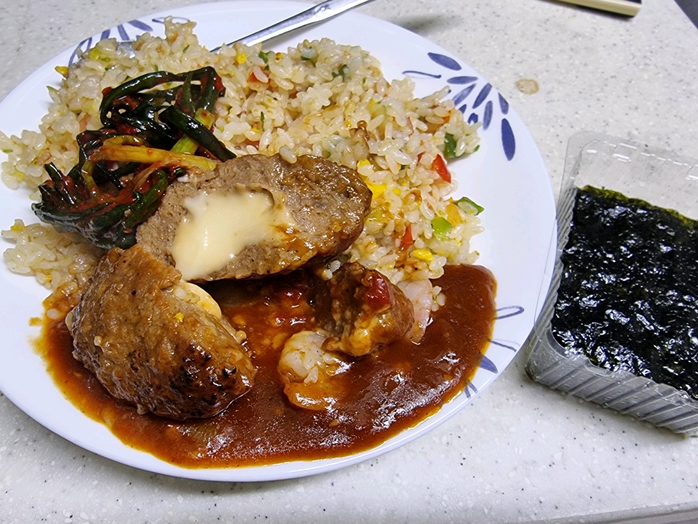 치즈의 약간의 꼬릿한 냄새? 일반 함박스테이크가 내 취향이라 다음부턴 요건 패스할 것 같네요;;