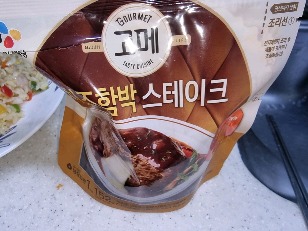 매번 간편하게 냉동볶음밥이 거의 주식 이지만 어제 로켓배송으로 주문한 함박 스테이크가