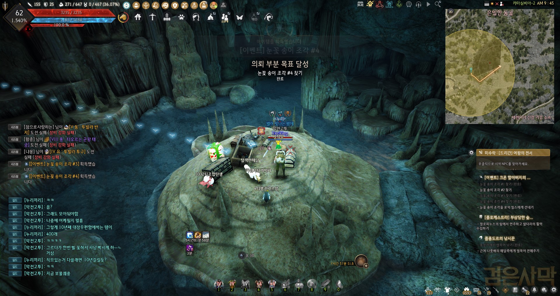 지도에 눈꽃 표시된 곳이 동굴쪽으로 안내하는데 그냥 계속 쭉~ 들어가다보면 선물상자 나옵니다.