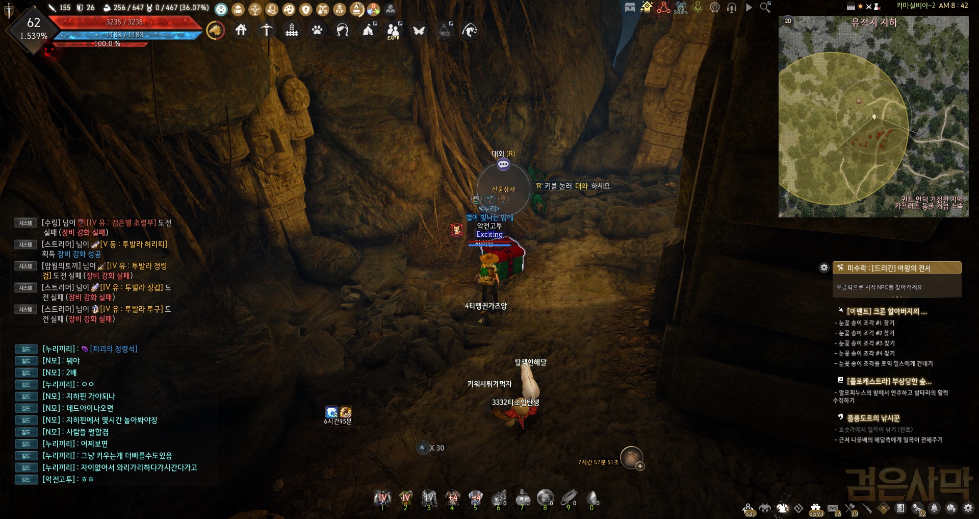 지도에 눈꽃 표시된 곳이 동굴쪽으로 안내하는데 그냥 계속 쭉~ 들어가다보면 선물상자 나옵니다.
