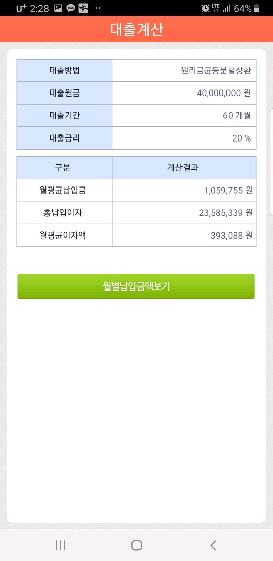 월평균 불입금이 두개 합쳐서 125만원 조금 넘죠.