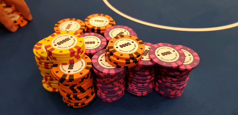 그날따라 운 좋게 패가 잘 들어와서 세컨 칩리더 등극!