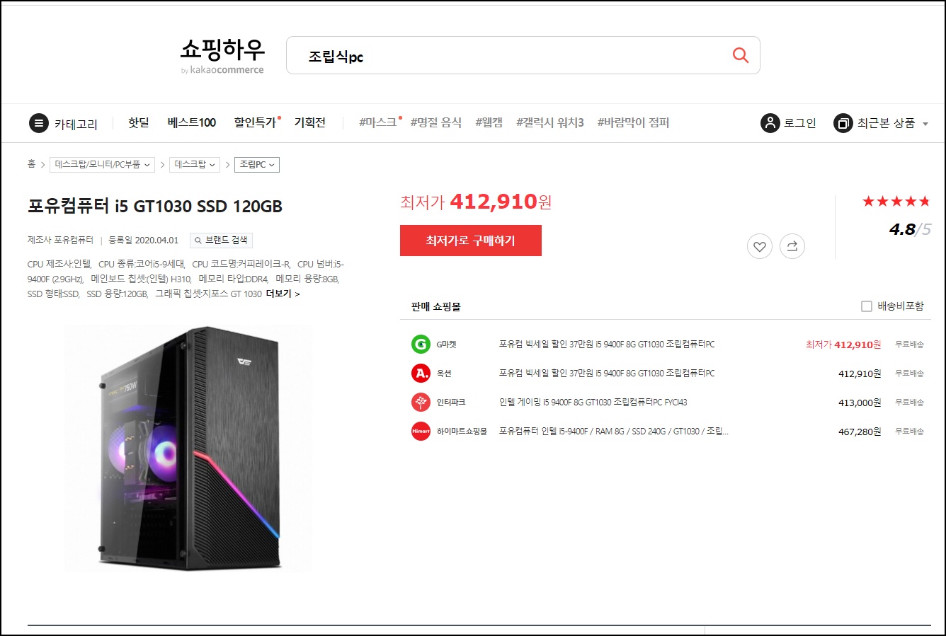 조립식 컴퓨터는 최저가로 검색해 보고 구매하러 간다 하더라도 사양 옵션에 따라 가격이 천차만별로 뛰긴 합니다.